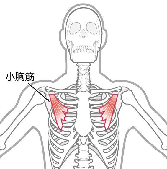 胸の奥にある「小胸筋」という筋肉を触ってみると、まるで石のように硬直していました。小胸筋は胸の深部にあり、外からは見えない筋肉ですが、姿勢を保つ上で非常に重要な役割を果たしています。