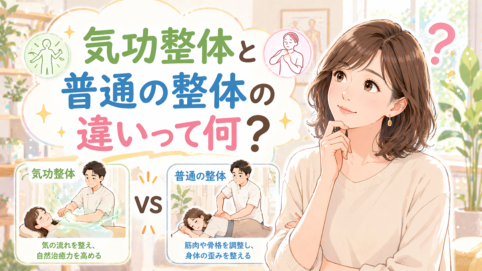 普通の整体と気功整体の違い。それは「形を整えるか、命の輝き(巡り)まで整えるか」の違いです。