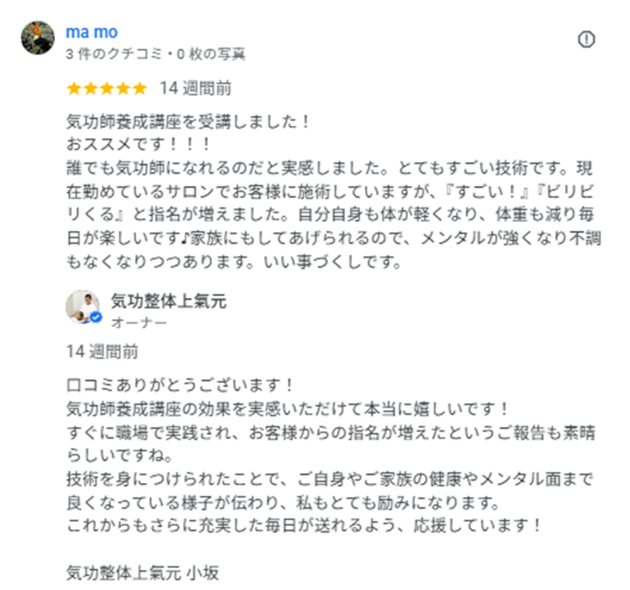 誰でも気功師になれるのだと実感しました。とてもすごい技術です。