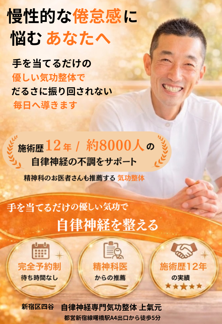 倦怠感にお悩みのあなたへ|新宿区四谷自律神経専門気功整体上氣元