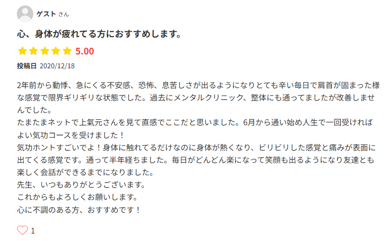 私自身、過去に深い腰痛や不安障害に悩み気功整体によって救われた一人です。