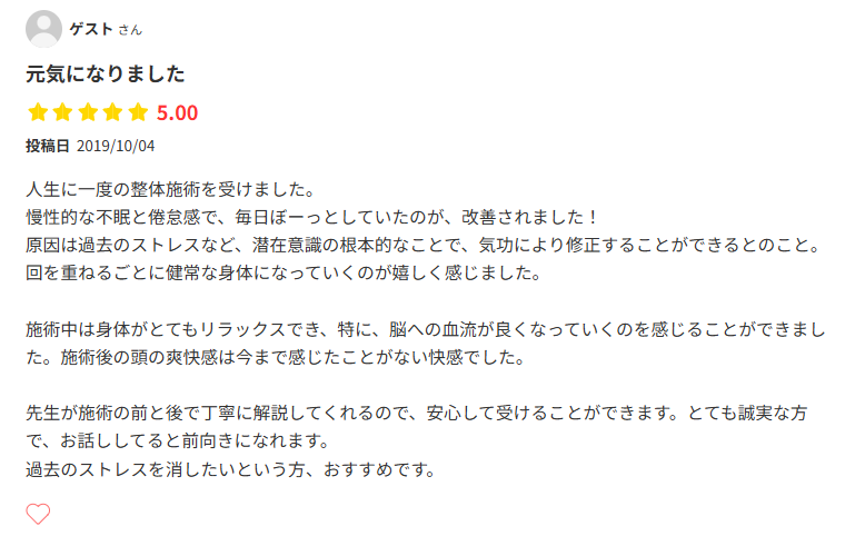 気功整体院ではめずらしいGoogle口コミ70件以上