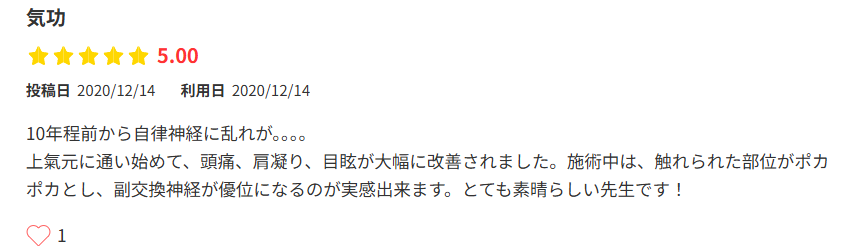 気功整体院ではめずらしいGoogle口コミ70件以上
