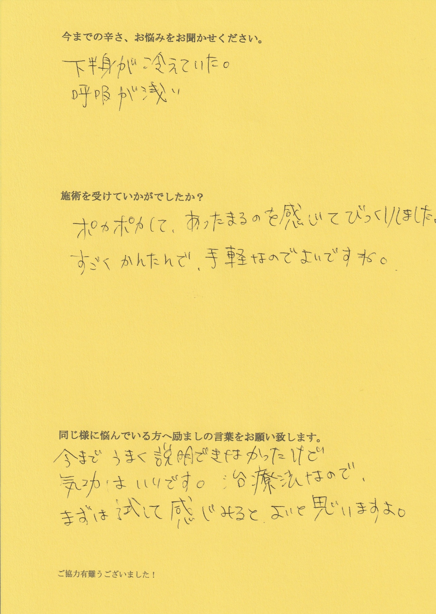 同じように悩んでいる方へ励ましの言葉をお願い致します。