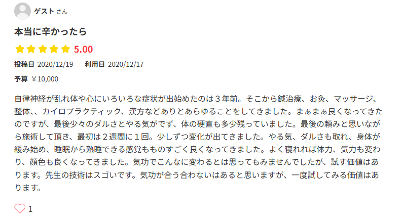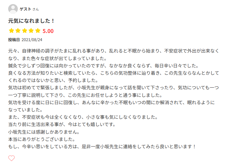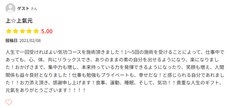 気功整体院ではめずらしいGoogle口コミ70件以上