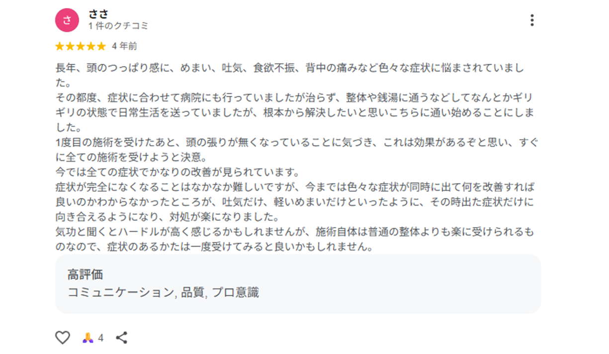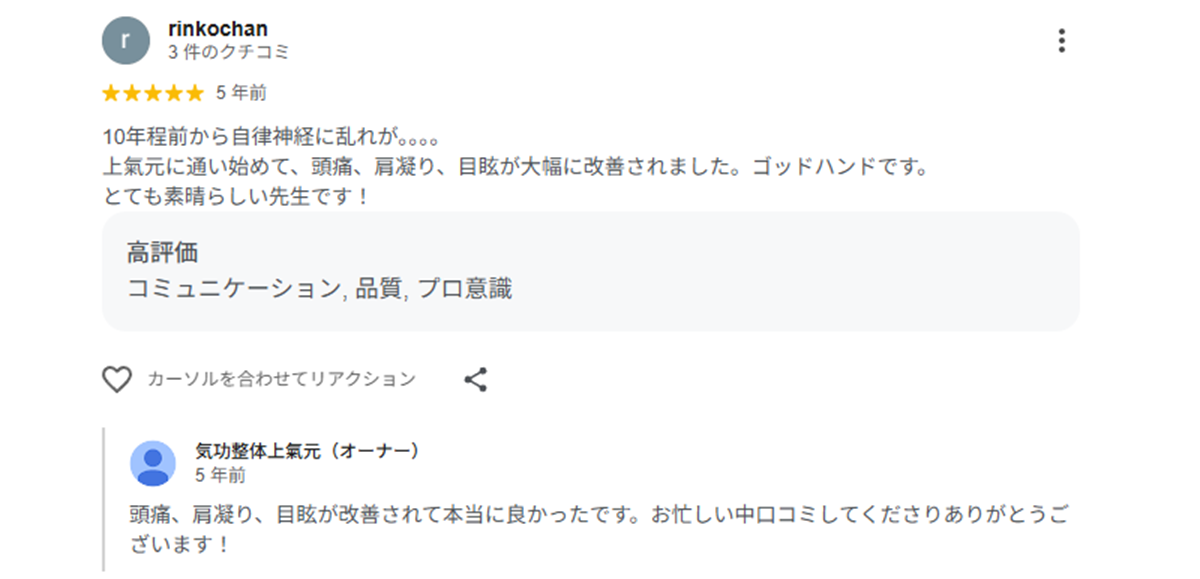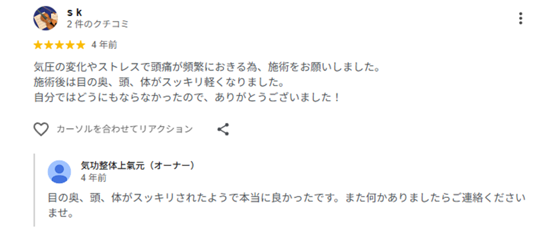 気功整体院ではめずらしいGoogle口コミ70件以上