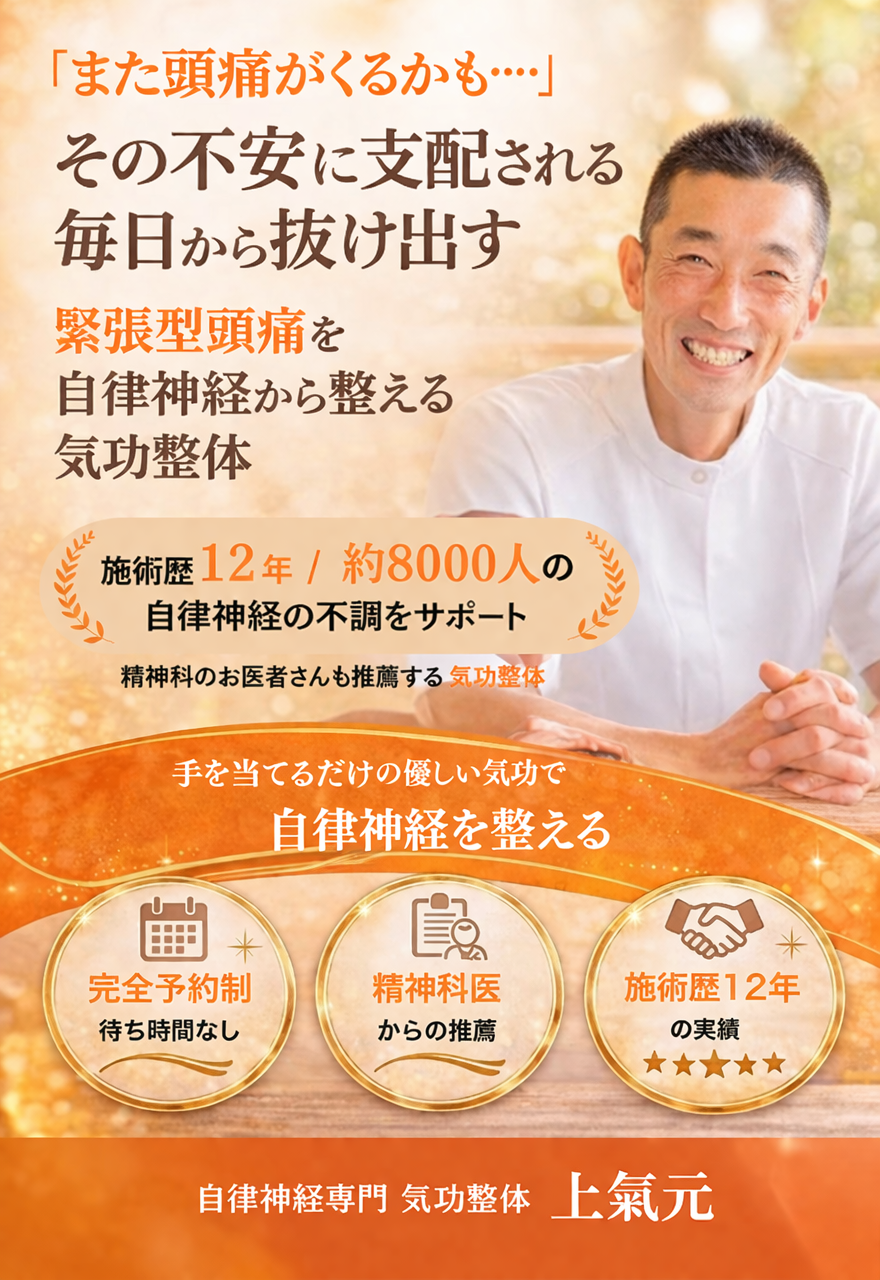 新宿・四谷で緊張型頭痛を根本改善|自律神経専門の気功整体 上氣元