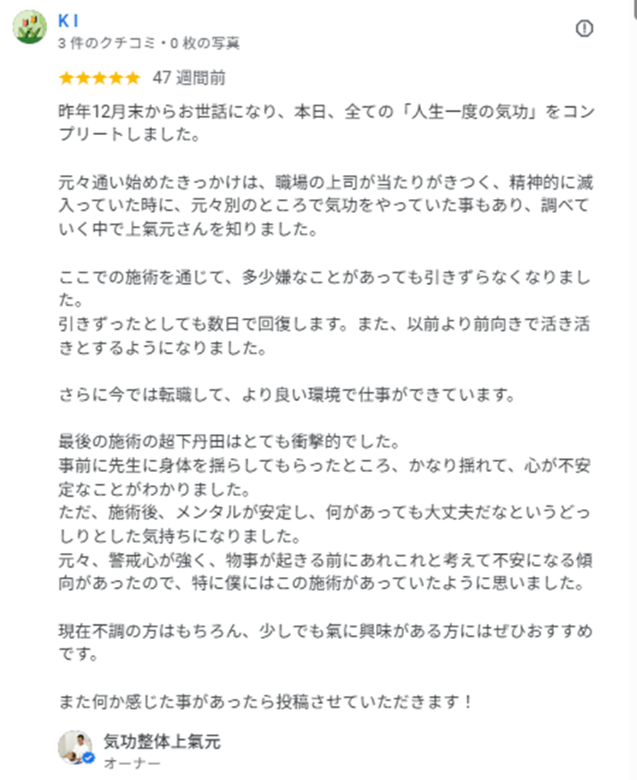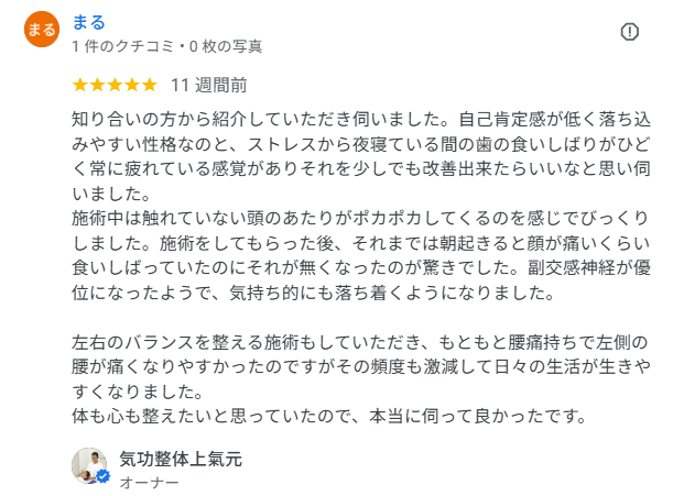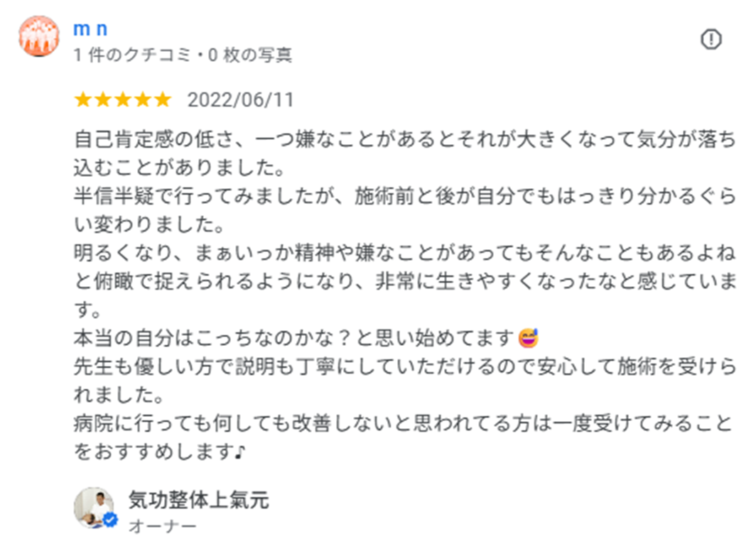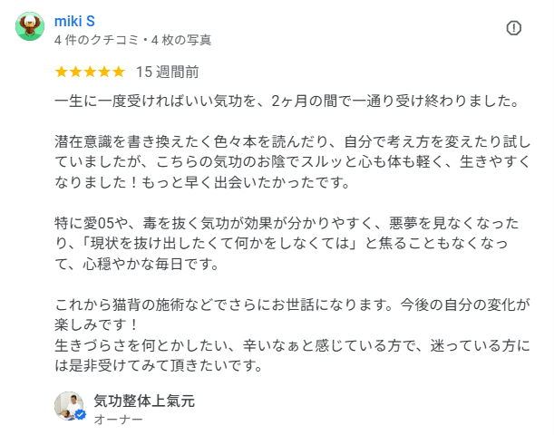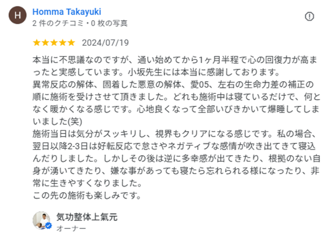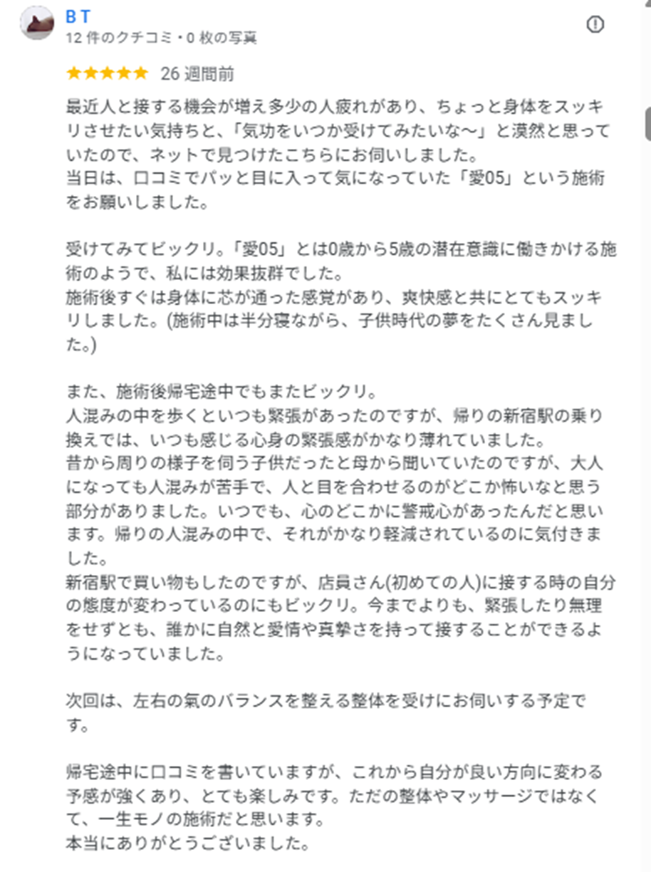 気功整体院ではめずらしいGoogle口コミ70件以上