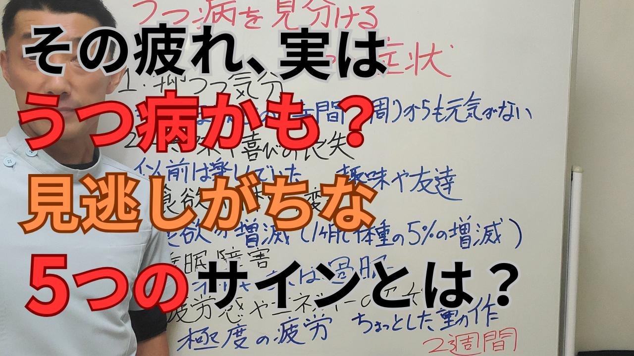 自律神経専門気功整体上氣元です。 当院にもうつ病を患っている方が多くいらっしゃいます。 その反面、「私うつ病なのかな?」と思っている方も多いんですね。 この症状が出たらうつ病を疑ってくださいとご提示させていただきました。...