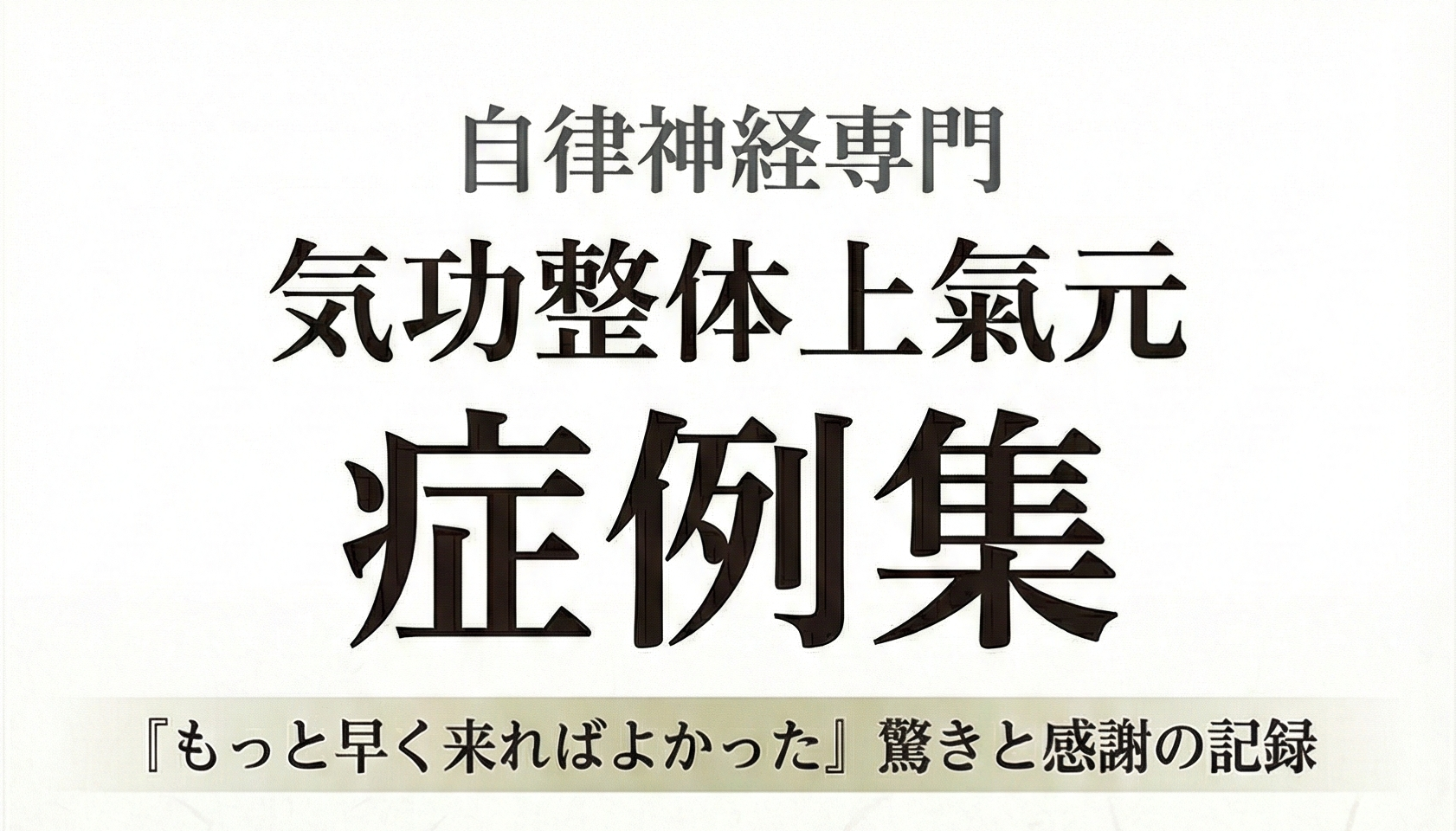 こんにちは!新宿区四谷で自律神経専門気功整体「上氣元(じょうきげん)」を営む小坂です。 本日は「嬉しいお知らせ」があります。 電子書籍『自律神経専門 気功整体上氣元 症例集』を出版いたしました! なぜ今、この本を出したの...