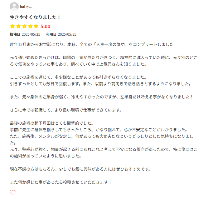 気功整体院ではめずらしいGoogle口コミ70件以上