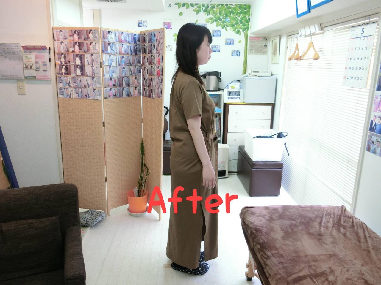 施術後は反り腰も緩和し、首も自然と上半身に乗っています。