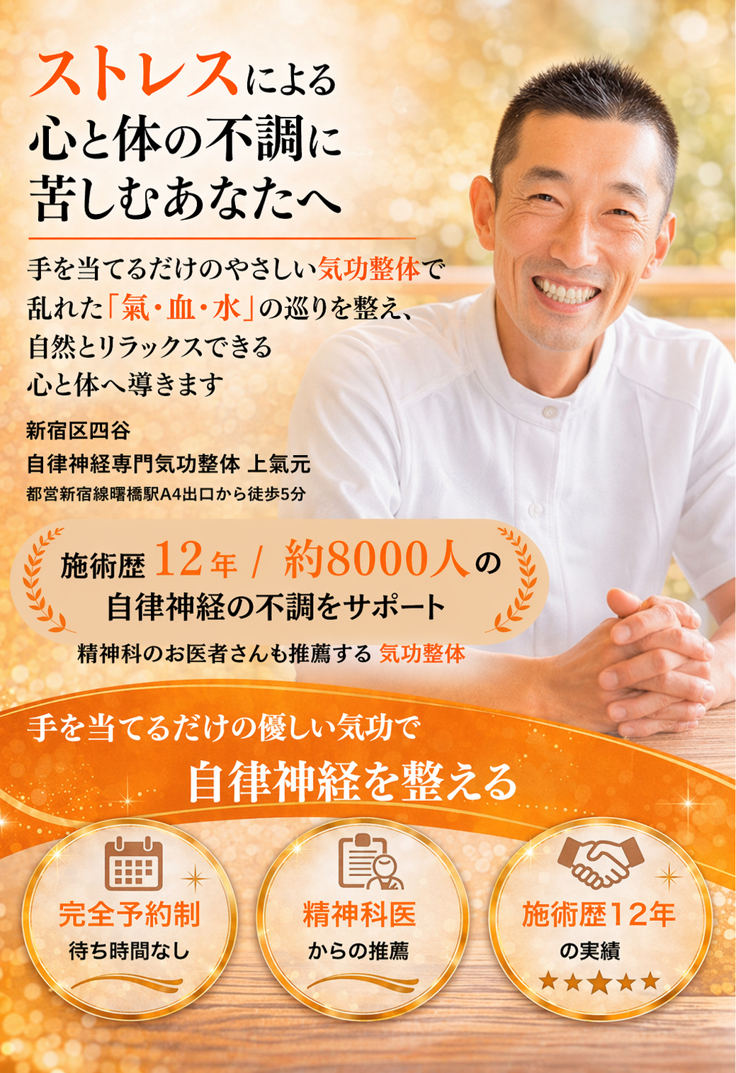 ストレスによる心身の不調にお悩みなら|東京都新宿四谷の自律神経専門気功整体上氣元