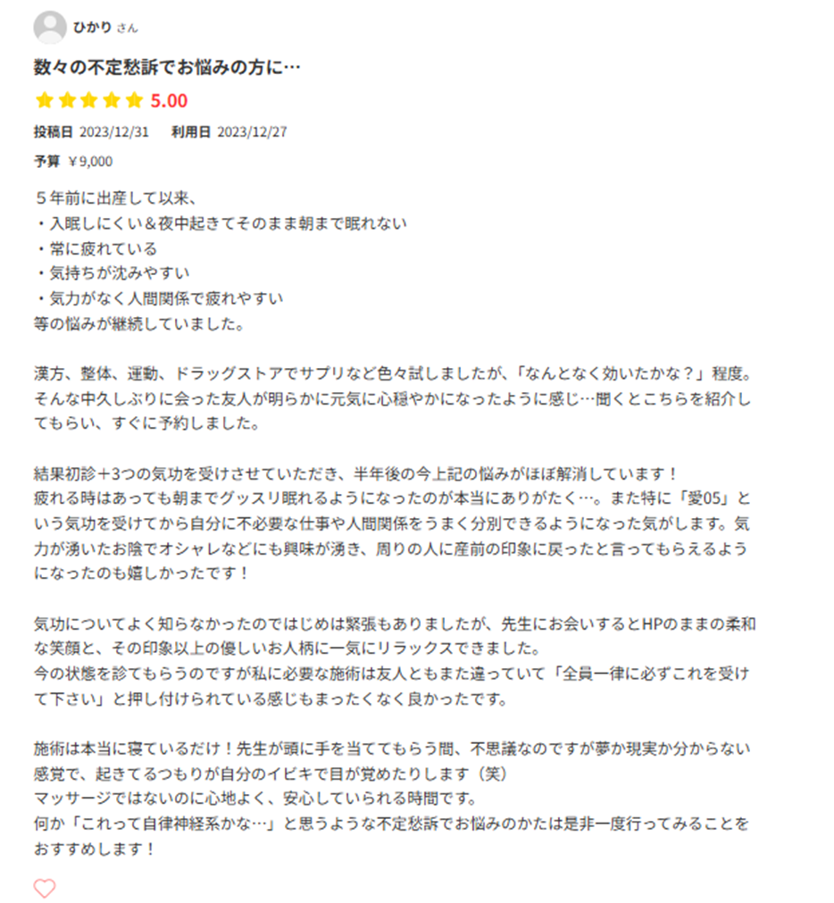 気功整体院ではめずらしいGoogle口コミ70件以上